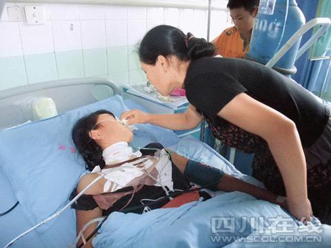 醫(yī)生說(shuō),芳芳被送入醫(yī)院時(shí),頸部、背部以及胸口都有明顯的刀傷,性命危在旦夕。經(jīng)過(guò)將近一天的救治,芳芳目前傷情仍很嚴(yán)重,神志清醒,但說(shuō)話仍很吃力,記者采訪時(shí)她只能點(diǎn)頭和搖頭表示!