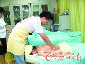 不僅僅是男生去美容,還有更多的男性成為美容工作者。當(dāng)記者走進(jìn)環(huán)市東某美容院時,中醫(yī)學(xué)院本科畢業(yè)的李繼德正在為一名女客戶做背部精油推拿。入院已經(jīng)三個月,為女性做美容對他來說并不陌生。