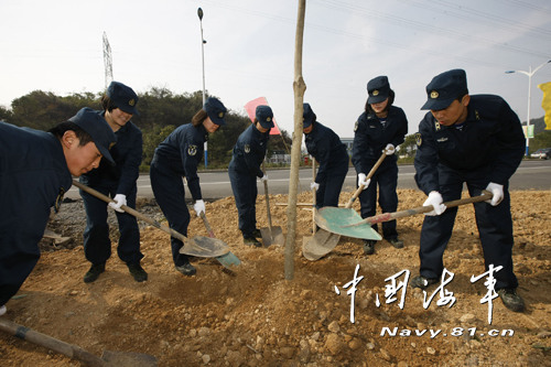 11月6日,東海艦隊某水警區(qū)20名官兵來到駐地經(jīng)濟(jì)開發(fā)區(qū)開展軍民秋季綠化植樹活動。寒風(fēng)中官兵們奮戰(zhàn)半個多小時,300顆左右的樹木挺立在荒蕪的土地上,頓時變得生機(jī)盎然起來。拍下身上的塵土,大家紛紛表示能在喜迎黨的十八大之際,為建設(shè)第二故鄉(xiāng)貢獻(xiàn)力量,很開心。