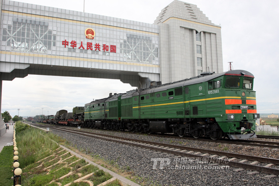 參加“和平使命—2013”中俄聯合反恐軍事演習第一列地轉專列開出國門。曹占禮 攝