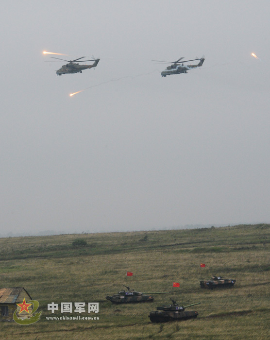 中俄舉行實(shí)兵合練 解放軍96A坦克編隊(duì)進(jìn)攻