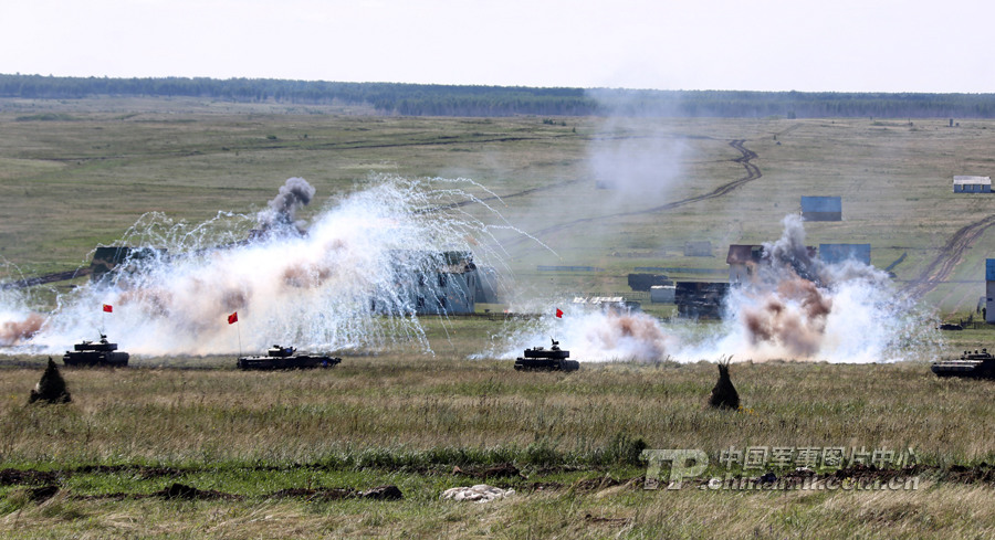 我坦克戰(zhàn)車對恐怖武裝力量實施火力打擊。李祥輝攝