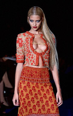 1月20日,時裝模特在巴黎展示2003年新款的春夏時裝。為聲援反艾滋病活動,法國的服裝設(shè)計(jì)大師Jean-Paul Gaultier和前超級名模Ines de la Fressange將在1月22日舉辦一次慈善晚會,為艾滋病研究和防治募集資金。
