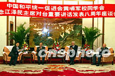 中國(guó)和平統(tǒng)一促進(jìn)會(huì)、黃埔軍校同學(xué)會(huì)27日在北京舉行座談會(huì),紀(jì)念江澤民主席《為促進(jìn)祖國(guó)統(tǒng)一大業(yè)的完成而繼續(xù)奮斗》重要講話發(fā)表八周年。全國(guó)政協(xié)副主席羅豪才、黃埔軍校同學(xué)會(huì)副會(huì)長(zhǎng)林上元、黎元等四十人出席。作者:毛建軍
