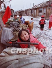 在北京務工的外地菜農的孩子二月在寒假快樂地游戲,孩子們即將迎來新學期。作者:滿會喬