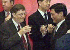 二十七日,北京市科學(xué)技術(shù)委員會和北京信息化辦公室與微軟(中國)有限公司的簽署合作備忘錄儀式在北京舉行。北京市委書記劉淇(右)與比爾·蓋茨(左)出席簽字儀式。中新社圖