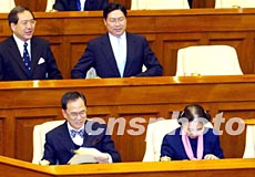 香港政務(wù)司、律政司等列席財(cái)政預(yù)算案.香港政務(wù)司長(zhǎng)曾蔭權(quán)、律政司長(zhǎng)梁愛詩(shī)等政府高官,3月5日列席立法會(huì)聽取財(cái)政司司長(zhǎng)梁錦松提交2003至2004年度財(cái)政預(yù)算案。洪少葵 攝