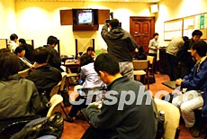 香港傳媒關(guān)注財(cái)政預(yù)算案。香港政府3月5日公布財(cái)政預(yù)算案,大批新聞媒體聚集立法會(huì)認(rèn)真聽取財(cái)政司長(zhǎng)梁錦松提交的預(yù)算案。洪少葵 攝