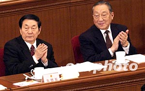 朱镕基、李嵐清三月十八日參加十屆全國人大一次會議閉幕會。作者:盛佳鵬