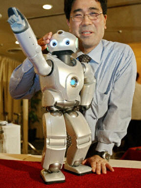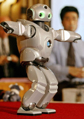 27日,日本SONY公司在東京展示了新研制的“SDR-4X II”型機(jī)器人,這種型號(hào)的機(jī)器人會(huì)跳舞,且能夠與人通話、通過傳感器越過障礙物行走。“SDR-4X II”型機(jī)器人將在4月3日的橫濱2003機(jī)器人展上亮相。