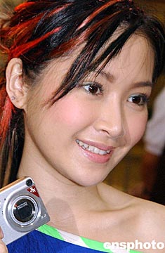 中新網3月31日電 香港藝人關心妍昨日在旺角新世紀廣場出席CASIO“EXILIM”新款數碼相機新聞發(fā)布會,場面冷清,只有十余名歌迷到場支持。