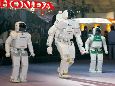 日本本田公司研制的新型機(jī)器人P-3 and Asimo在4月2日的橫濱2003機(jī)器人展上亮相。