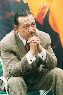 一身老克勒打扮的姜文,從《茉莉花開》拍攝現(xiàn)場(chǎng)忙里偷閑,溜到上影廠小露臺(tái)接受采訪,為電影《綠茶》做宣傳。說話中途偶爾接個(gè)電話,紫色吊帶的手機(jī),翻蓋上忽隱忽現(xiàn)一小方卡通粘紙,電話是趙薇打來的,姜文喚她“薇姐”。