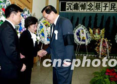全國政協(xié)主席賈慶林二十一日在北京八寶山,悼念逝世的前臺(tái)盟中央主席蔡子民先生,并向蔡先生的親屬表示慰問。作者:鄭萍萍