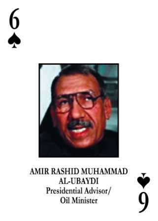 美軍方29日稱,他們已扣押了薩達(dá)姆政府的石油部長阿米爾·穆罕默德·拉施德。拉施德在美軍通緝撲克中排名47,是黑桃六。他是美軍已宣布拘捕的第14名伊拉克高層官員。(路透)