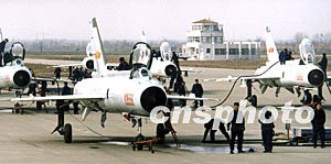 駐守黃海地區(qū)的海軍航空兵殲擊機部隊,在春季超低空攻擊與截擊訓(xùn)練中,戰(zhàn)機編隊快速加油提高戰(zhàn)斗力。汪漢宗 攝