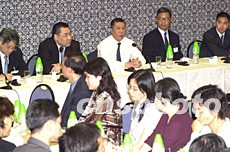 澳門(mén)特區(qū)行政長(zhǎng)官何厚鏵十一日上午來(lái)到澳門(mén)旅游活動(dòng)中心與澳門(mén)仁伯爵綜合醫(yī)院和鏡湖醫(yī)院及前線醫(yī)護(hù)人員進(jìn)行座談,鼓勵(lì)他們?yōu)榉乐魏椭委煼堑湫头窝鬃龀龈蟮呐。中新社記者:李?/p>
