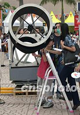 十八日,香港文化中心廣場舉行博物館開放日,一座“杜素式天文望遠鏡”吸引參觀者。據(jù)悉,該望遠鏡能看見暗至16等的恒星、小行星等。譚達明 攝