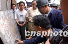 5月28日,發(fā)生透水事故的河南安陽安利煤礦現(xiàn)場,剛剛從井下上來的礦工正在向地面工作人員講述救援工作進度。該煤礦自5月24日透水事故發(fā)生以來,救援工作一直在緊張地進行中。至5月28日上午,搶險工作又向前推進25米,距離出事地點剩下130余米,礦井涌水正常。目前扇風筒已接近最前沿施工地點,以保證井下氧氣濃度達到正常水平。作者:慎重