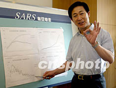 截止五月二十九日,北京的非典型肺炎臨床診斷病例為二千五百一十七例,其中醫(yī)務(wù)人員為三百九十八例,位居全國(guó)之首。韓德民指著北京地區(qū)SARS疫情事態(tài)圖說(shuō),北京的醫(yī)務(wù)人員感染總數(shù)中的百分之九十是在四月中旬到五月五日期間感染的,原因很明顯,救死扶傷的醫(yī)護(hù)人員倉(cāng)促上陣且缺乏必要培訓(xùn),防護(hù)措施裝備不足,特別是對(duì)SARS傳染的嚴(yán)重性認(rèn)識(shí)不足。說(shuō)話(huà)間,韓德民提到了今天上午北京人民醫(yī)院為殉職犧牲的護(hù)士王晶舉行追悼會(huì),他眼中閃爍著淚花說(shuō),作為醫(yī)務(wù)系統(tǒng)的指揮者必須像指揮戰(zhàn)爭(zhēng)的將軍愛(ài)護(hù)士兵一樣保護(hù)一線的醫(yī)生護(hù)士。