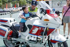 2003年6月22日,香港警務(wù)處在維多利亞公園舉行的“同心攜手畫(huà)出彩虹”嘉年華活動(dòng)上,展示警用電單車。中新社記者 錢(qián)興強(qiáng)