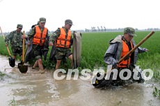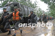清晨趕到焦崗湖大堤的南京軍區(qū)某集團軍官兵,連營房都沒進,就沖到了一線,為焦崗湖防險搭起了第二道堤防線。
