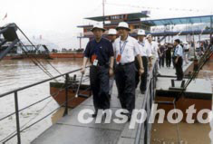 七月上中旬,臺灣企業(yè)家三峽地區(qū)投資考察團一百多人在參觀了重慶一些企業(yè)后來到三峽白帝城游覽。圖為企業(yè)家們乘旅游船在白帝城碼頭上岸。作者:李中全