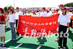 中國駐舊金山總領(lǐng)館派隊參加排球、籃球、乒乓球等項目的比賽。近百個隊伍陸續(xù)通過主席臺,司儀鄭嘉儀和張磊一一針對每個組織介紹。所有的解說都是以中文進行的。
