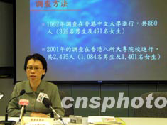 香港中文大學(xué)五日公布的調(diào)查結(jié)果顯示,與92年時(shí)相比,香港大專(zhuān)學(xué)生對(duì)性騷擾問(wèn)題的意識(shí)仍然不高。圖為負(fù)責(zé)這項(xiàng)研究工作的香港中文大學(xué)心理學(xué)系教授鄧素琴。作者:裘之越