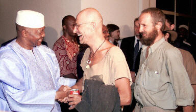 8月19日,馬里總統(tǒng)杜爾(左一)在巴馬科接見獲釋的歐洲人質。