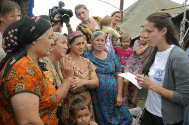 作為聯(lián)合國難民事務高級專員公署的“親善大使”,好萊塢影星安吉莉娜·朱莉22日探訪了俄羅斯北高加索地區(qū)靠近車臣邊境的貝拉難民營,受到車臣難民的熱情歡迎。朱莉自從2001年被聯(lián)合國難民署任命為“親善大使”以來,已經(jīng)實地訪問了世界多個國家的難民營。