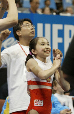 25日在第37屆體操世錦賽上,中國(guó)小將范曄以一套無(wú)可挑剔的動(dòng)作得到了9.812分,無(wú)可爭(zhēng)議的摘走了金牌。這也是中國(guó)隊(duì)在本屆世錦賽中獲得的第四枚金牌。圖為范曄在等待裁判打分時(shí)的激動(dòng)表情。