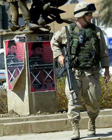美軍士兵和伊拉克警察到處張貼懸賞捉拿薩達(dá)姆的海報時引來了眾多巴格達(dá)市民的圍觀。圍觀的人群當(dāng)中對捉拿薩達(dá)姆一事各有各的看法,一名現(xiàn)年23歲的伊拉克牙科醫(yī)生海德爾·阿里表示:“我認(rèn)為他們遲早會捉到薩達(dá)姆的,但有一些人似乎不知道任何有關(guān)這巨額獎賞的事。”