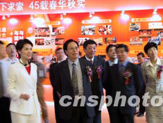 中央電視臺(tái)建臺(tái)四十五周年發(fā)展成就展八月二十九日在北京軍事博物館開幕。圖為中國(guó)廣播電影電視總局局長(zhǎng)徐光春和嘉賓參觀展覽。中新社記者:杜洋