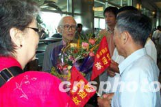 臺灣著名詩人余光中伉儷9月16日下午抵廈門機場,受到鄉(xiāng)親的熱烈歡迎。。余光中的祖籍在泉州市永春縣,這是他第一次“原鄉(xiāng)行”。作者:鄭祚聲
