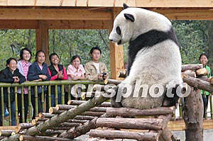 記者在現(xiàn)場(chǎng)看到,兩只大熊貓進(jìn)入新獸舍后調(diào)皮地爬上鐵欄桿玩耍,一只名叫龍騰的大熊貓搬進(jìn)新居后,便迫不及待地直撲室外放養(yǎng)場(chǎng),興奮地四處奔跑。它時(shí)而啃食竹子,時(shí)而沿著圍墻邊蹚水嬉戲。放養(yǎng)場(chǎng)中間用木頭搭建的梯子則成了龍騰的健身場(chǎng),只見它大搖大擺踱上梯子,又變著花樣從梯子上倒翻下來,其姿態(tài)甚為撒嬌。