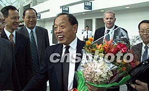 中國(guó)外長(zhǎng)李肇星二十三日抵達(dá)紐約出席第五十八屆聯(lián)大。中新社記者:趙海燕