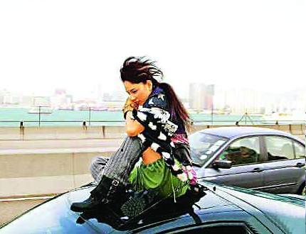 中新網(wǎng)10月22日電 香港英皇娛樂旗下性感型女歌手鄭希怡涉嫌違法,日前她危坐在一架跑車車頂上(上圖),跑車司機以時速七八十公里,在香港東區(qū)走廊高速公路飛馳,險令沿途觀看的車輛發(fā)生交通意外。