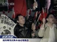 中新網(wǎng)11月1日電 據(jù)央視國際報(bào)道,美國紐約各界人士約上千人于當(dāng)?shù)貢r(shí)間10月31日晚在臺(tái)灣當(dāng)局領(lǐng)導(dǎo)人陳水扁所住的曼哈頓華道夫-阿斯多里亞飯店前舉行抗議示威,反對(duì)他借“過境”美國之機(jī)搞“臺(tái)獨(dú)”。