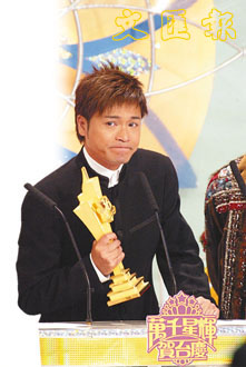 而“我最喜愛的男主角”一獎(jiǎng)中,賽前穩(wěn)操勝券的郭晉安眾望所歸,憑借對《憨夫成龍》里“阿旺”一角的出色表演奪獎(jiǎng)。領(lǐng)獎(jiǎng)時(shí)刻他激動(dòng)地感謝17年來支持他的人。郭晉安特別表示﹕“當(dāng)任何人都不相信我有機(jī)會(huì)站在頒獎(jiǎng)臺(tái)做男主角時(shí),很感謝梁家樹(無線戲劇組高層)給予我信心!