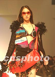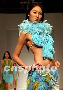 浙江工程學(xué)院國際時(shí)裝技術(shù)學(xué)院學(xué)生錢麗霞的作品《漣漪》二十三日在北京獲得第二屆中國針編織時(shí)裝設(shè)計(jì)大賽頭獎(jiǎng)。中新社記者:史利