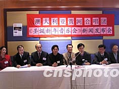 中國駐悉尼文化領(lǐng)事李金生(右3)24日在黃河合唱團(tuán)于悉尼華埠舉行的新聞發(fā)布會上說,此次音樂會對活躍僑界文化生活,使社區(qū)生活多樣化,都是非常有意義的。