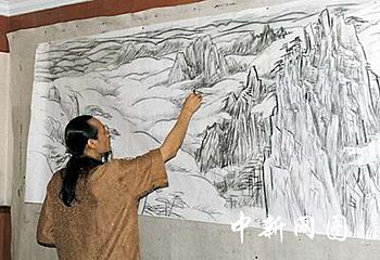 董希源山水與花鳥皆有較深的造詣,且善作大畫而不驕不厲,一幅《黃山畫卷》竟長達(dá)27米、高2.3米,令參觀者嘆為觀止。在建國五十四周年前夕,他曾分別為天安門城樓和人民大會堂完成《山高云祥》、《鶴鳴天地寬》兩幅宏篇巨作。