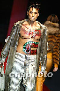 喜得龍.計(jì)文波時(shí)裝發(fā)布會(huì)二十五日晚在中國國際時(shí)裝周上舉行,一名男模特身繪火龍出場,寓意中國時(shí)裝品牌發(fā)展的龍馬精神。中新社記者:毛建軍