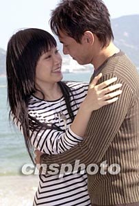 歌星黃凱芹、關(guān)心妍11月26日在香港赤柱正灘為無(wú)線電視拍攝音樂(lè)劇《愛(ài)在富豪海灣的日子》外景。圖為兩人一幕親熱鏡頭。作者:鄧慶樂(lè)