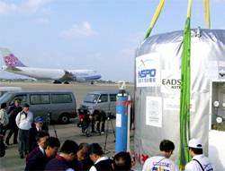 中新網(wǎng)12月2日電 臺(tái)灣的“中華衛(wèi)星二號(hào)”1日由設(shè)于新竹的“太空計(jì)劃室”運(yùn)往桃園中正機(jī)場(chǎng),已于今天凌晨2時(shí)由“華航”貨機(jī)運(yùn)往美國(guó)洛杉磯,再轉(zhuǎn)運(yùn)加州范登堡空軍基地。據(jù)臺(tái)灣媒體報(bào)道說(shuō),這枚衛(wèi)星定不動(dòng)聲色明年元月17日凌晨由火箭發(fā)射升空。