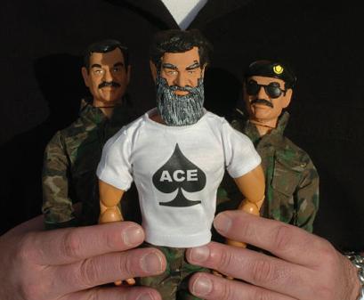 12月14日,伊拉克前總統(tǒng)薩達(dá)姆被美軍抓獲的消息轟動(dòng)了世界,美國(guó)的玩具商反應(yīng)神速,24小時(shí)后,在美國(guó)的一些電子商務(wù)網(wǎng)上就有“被捕的薩達(dá)姆”玩具出售。(AP Photo Douglas Healey)