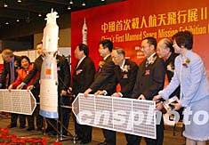迎圣誕節(jié)之際,特備展覽“中國首次載人航天飛行展Ⅱ--給香港的禮物”十二月二十三日在香港科學(xué)館開幕,其中最珍貴的展品包括楊利偉的工作訓(xùn)練服以及香港特區(qū)和珠江三角洲衛(wèi)星圖等。圖為展覽開幕啟動儀式。中新社記者:錢興強(qiáng)