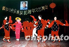 福州各界民眾連日舉辦各種活動(dòng)紀(jì)念毛澤東誕辰110周年,福建金雞山療養(yǎng)院與福州溫泉街道離退休老人表演歌頌毛澤東的歌舞。作者:鄭祚聲