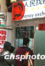 十二月二十六日是中國已故毛澤東主席誕辰110周年紀(jì)念日,在香港繁華的銅鑼灣街頭,一家兩替店懸掛的毛澤東像顯得引人注目。中新社記者:錢興強(qiáng)